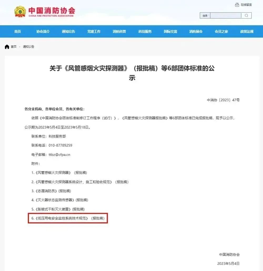 日(rì),佳岚智能(néng)參編《低(dī)壓用(yòng)電(diàn)安全監控系統的(de)技(jì)φ術(shù)規範标準》在中國(guó)消防協會(huì)的(de)官方網站(zhàn)進行(xíng)公示。 2022年(nián)經中國(guó)消防協會(huì)邀請(qǐng)